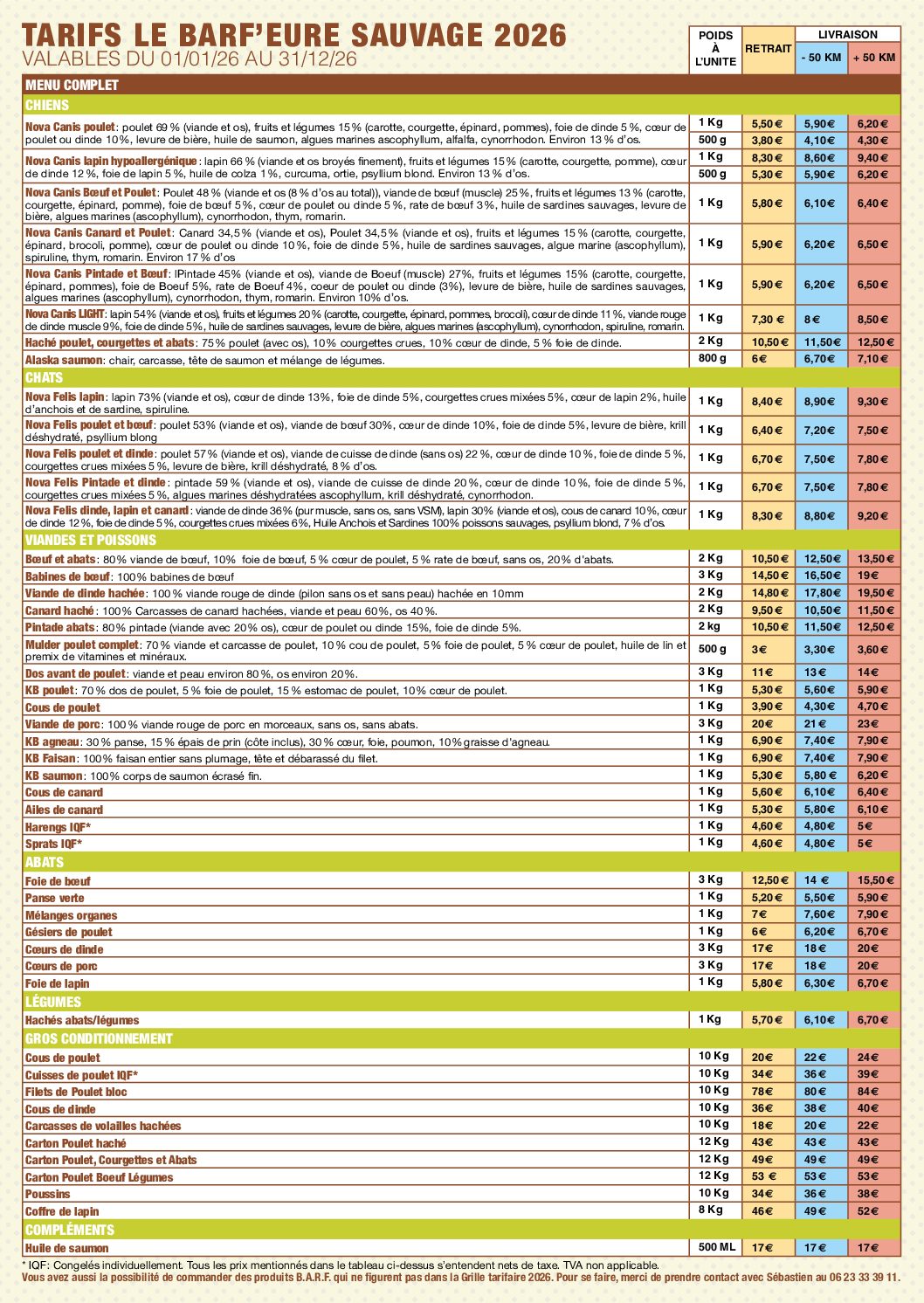 Nos tarifs B.A.R.F. Téléchargez les tarifs 2026 / Le Barf'Eure Sauvage Le Barf'Eure Sauvage / S.A.I. Non soumise à la TVA / Siret N° 849 666 383 00013 / 6, chemin des Vignes - 27920 Saint-Étienne-sous-Bailleul